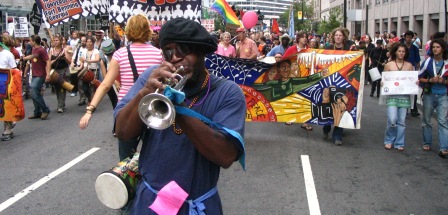 91-year old Julius Margolin established a scholarship for youth participation in the Great Labor Arts Exchange and is the feature of a new film. (www.aunionman.com). 98-year old photographer Milton Rogovin’s family are digitizing his photos, providing curriculum and more at www.miltonrogovin.com Elizabeth "Betita" Martínez just published "500 Years of Chicana Women's History" (Rutgers University Press) YLSN partner Young Women’s Drumming Empowerment Project has a new video YLSN’s website is going multi-media with new galleries, audio and video throughout!! Since 1999 YLSN has hosted several youth summits and produced neighborhood peace parades in Shaw, Petworth, Adams Morgan, Columbia Heights, Mount Pleasant, Takoma DC, Silver Spring MD and Takoma Park MD. Feb 03 Summit clip (Listen) From late May to mid-July, YLSN was joined by intern Kendra Penry, who compled her Masters in International Affairs from The George Washington University Elliott School of International Affairs. Her experiences included working in Appalachia, Puerto Rico, Denver and a human rights delegation to El Salvador. She worked on outreach for June events, DC Youth Media Collaborative projects and helped with sister organization, Young Women’s Drumming Empowerment Project summer program. Jan 1999: YLSN’s first project was to create and publish “Paul Robeson: Voice of the People” curriculum for area schools and organizations. Robeson will be featured as 10th anniversary events begin, with talent stretching from Hollywood to Nigeria. (see below for details!) This year also marks 25 years since the founding of DC Student Coalition against Apartheid and Racism (DC SCAR, 1983 – 1998). YLSN is digitizing DC Youth Activism Archives. DC Youth Media Collaboration supports youth media and contributes to the archives as a living history project. Sunday June 22 – Tuesday June 24 YLSN facilitated youth workshops at the Great Labor Arts Exchange and involve DC area youth in the Exchange. Youth scholarships are available. The Exchange is a wonderful gathering of union activists and cultural workers from around the nation, including public performances, workshops and jam sessions.